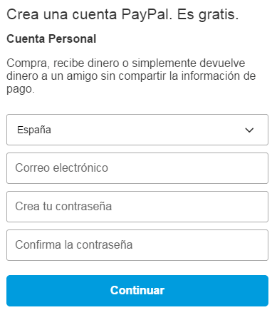 1. En la página de registro de PayPal selecciona la opción de cuenta personal.