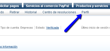 Para vincular su tarjeta de crédito a su cuenta Paypal diríjase a su cuenta y haga clic en la pestaña a donde dice perfil.