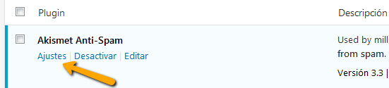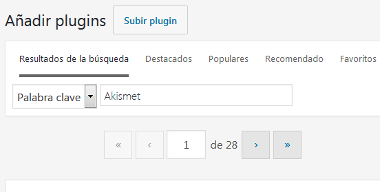 Arriba, a donde dice Plugins ponga el nombre del plugin, en este caso ponemos Akismet