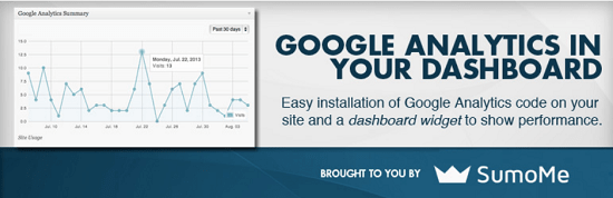 Incluye un widget de panel de administración que muestra un gráfico de los últimos 30 días de visitantes, un resumen del uso del sitio, las páginas principales, las referencias principales y las búsquedas principales.