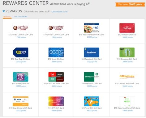 Los premios y puntos dependen del país. Por eso es mejor que accedas a tu panel para que veas lo que hay disponible en tu país.
